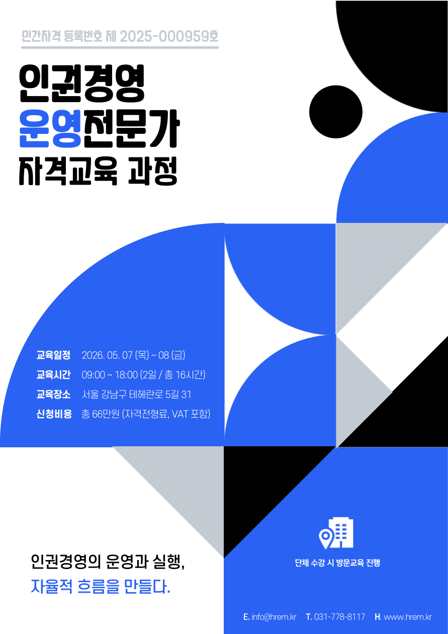 인권경영운영전문가 제3기 자격교육과정이 진행될 예정입니다.